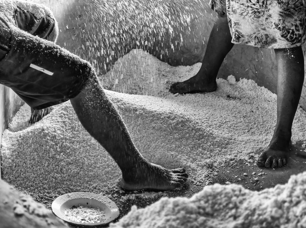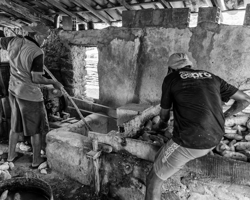 The cassava flour production process is laborious and requires knowledge. The men are responsible for extracting the cassava from the field and transporting it to the flour mill. Women carry out the extraction steps, while men continue pressing, crumbling, sifting, roasting and bagging. The flour house represents an important symbol of Brazilian food culture and rural tradition. It serves as a meeting and socialization space for the rural community. Joint work is essential to produce artisanal flour, as the amount of cassava to harvest and rake is significant. Parents, friends, and neighbors are present on the agreed days, making this difficult task a time to meet, exchange information and reunite, laugh, and share stories. In addition to socialization, cassava houses are cultural spaces with countless potential for preserving, protecting, and disseminating popular traditions.